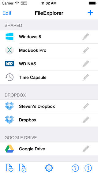 FileExplorer helps you to access files on your remote computer (Mac, Windows, Linux), NAS Server, Time Capsules / AirPort Extreme Base Stations with a hard drive attached and Cloud Storage (cloud services, but not with WebDAV (box.net, Dropbox, Google Drive, SkyDrive and other services with a desktop sync via remote (running PC or Mac) from iDevice. Stream movies and musics to your iDevice. Directly view photos, play slideshow on computer without iTunes sync. Access and manage documents on your office computer from home through iOS VPN or port forward.