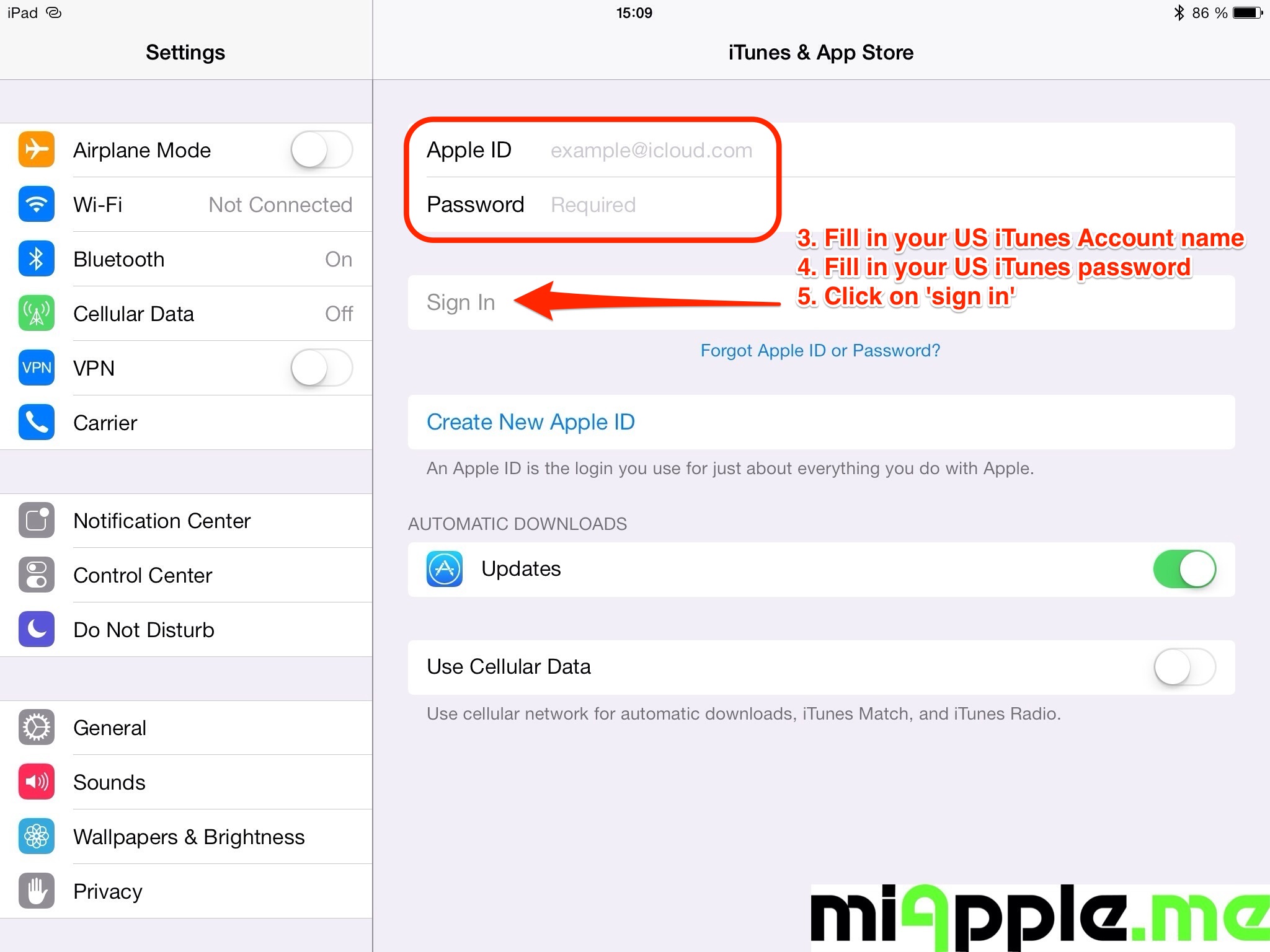 - Now sign in by using your US iTunes account / US Apple ID.