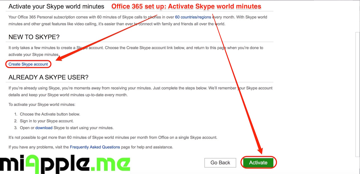 - Optional, you can activate your Skype 60 world minutes of calling per month to 60+ countries.