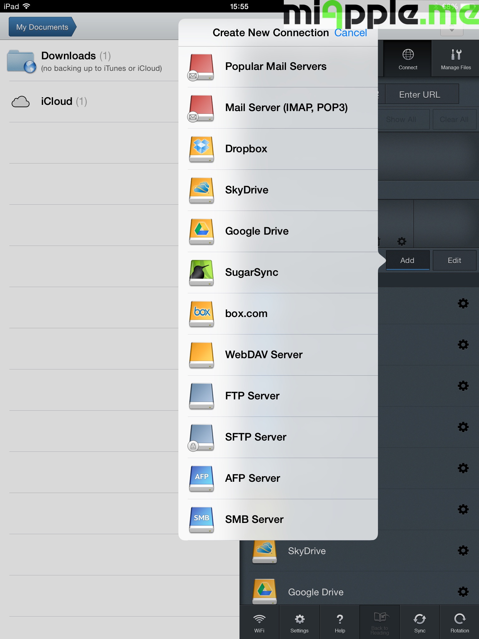 GoodReader can create many connections to cloud services, NAS drives, FTP servers, computers :