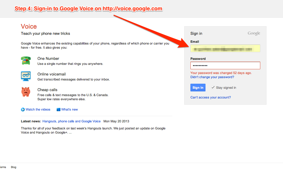 4. Open voice.google.com in your web browser and sign-in with your Google account. If you get an error message saying – ‘Google Voice is not available in your country’ – clear your browser cookies and try again.