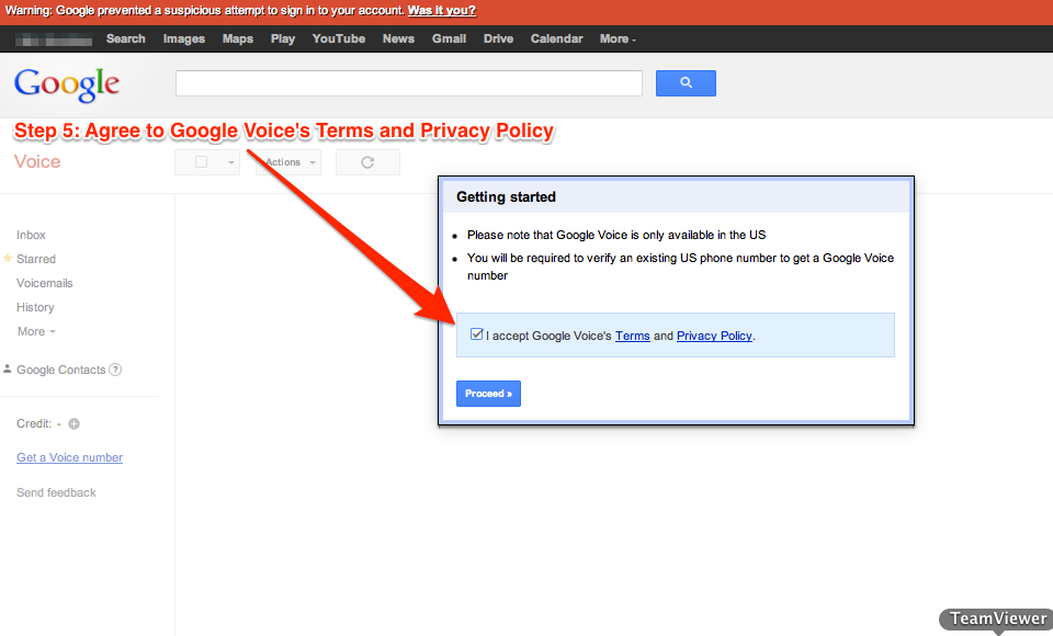 5. Agree to Google Voice’s Terms and Privacy Policy.