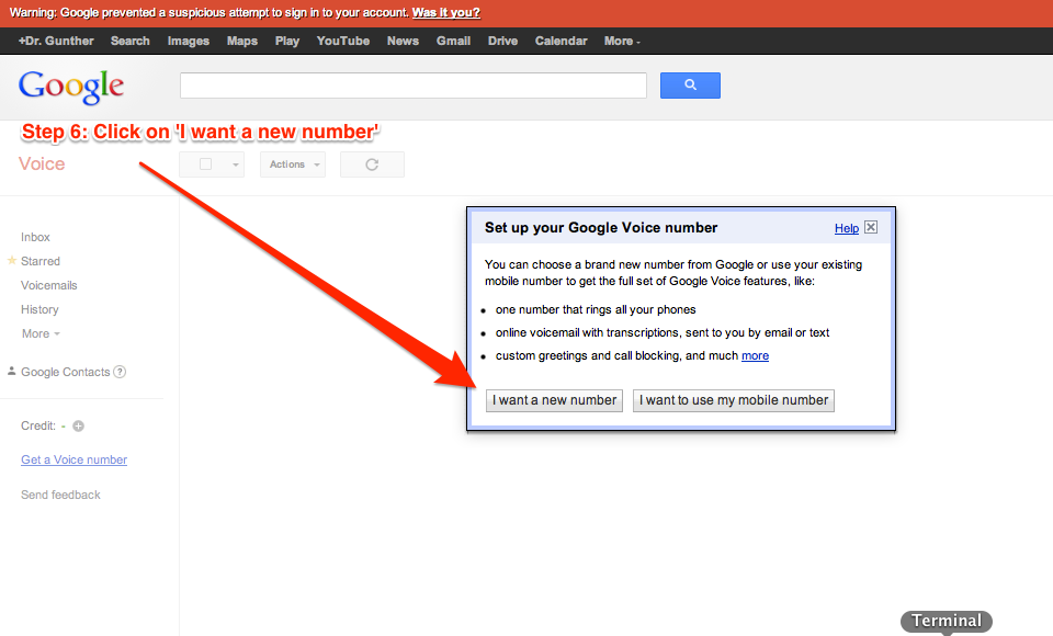 I activated Google Voice from Germany, but the same procedure should work with other countries as well. Here’s how to proceed: