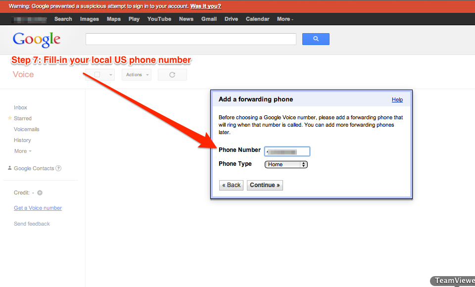 1. Get a local US Phone Number. Follow the steps described and you will get a charge-free US Phone number.
