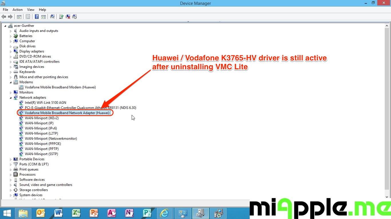 - After uninstalling go to ‘Control Panel‘, ‘Device Manager‘ and click on ‘Network Adapters‘: The driver for K3765 are still installed, even after uninstalling VMC Lite.
