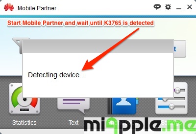 - Now run ‘Mobile Partner‘ and wait until the K3765 is detected.