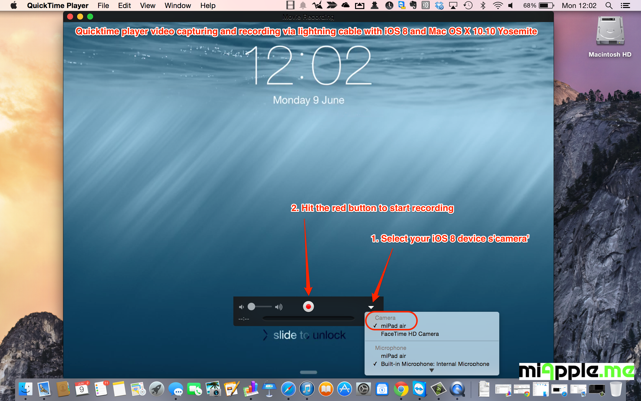 Nonetheless, lightning video capturing and recording is also working for iPhone and iPad screen mirroring without any developer login. The sole requirements are a connection via lightning cable, an iPhone or iPad running on iOS 8 and a Mac with Mac OS X 10.10 installed.