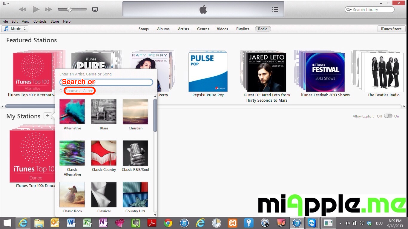 Here are some screenshots showing iTunes Radio / iTunes 11 on Windows 8.1: