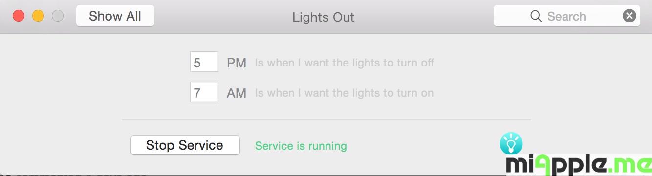 Lights Out preferences Service is running, Source: miApple.me