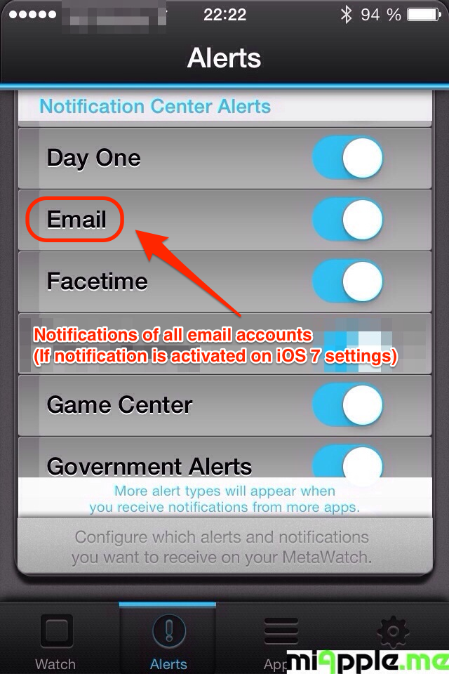 Up to now, it seems that the MetaWatch Manager 1.3 on iOS 7 is running more stably and there aren’t any bluetooth connection failures anymore. In my point of view, the updates of MetaWatch Manager 1.3 and of MetaWatch firmware 1.5 for compatibility to iOS 7 are a big step ahead, especially, because of using the new possibilities of iOS 7, especially the iOS 7 notifications, which are now included. My greatest wish is now fulfilled: Getting email notifications of every email account is now working!