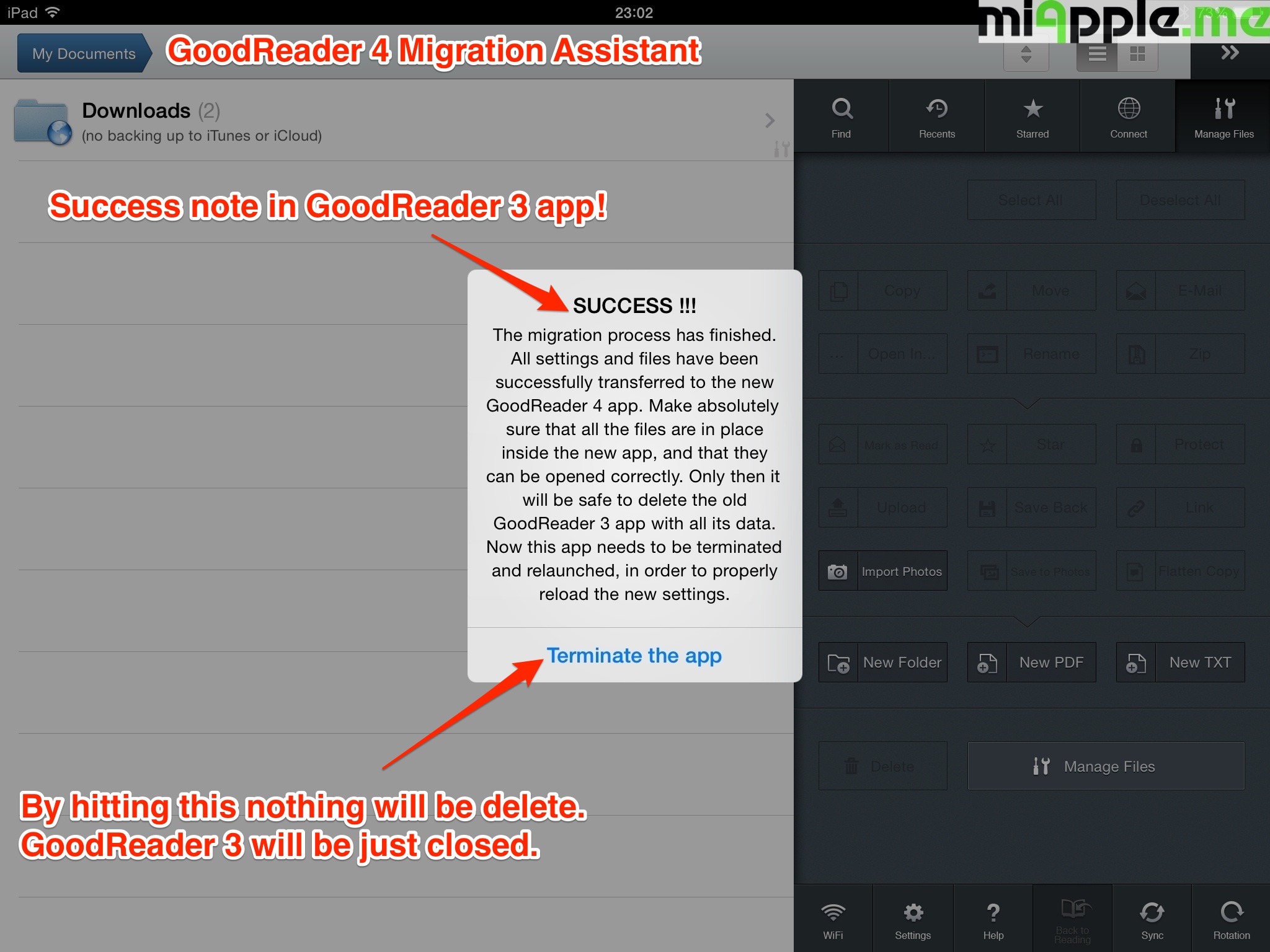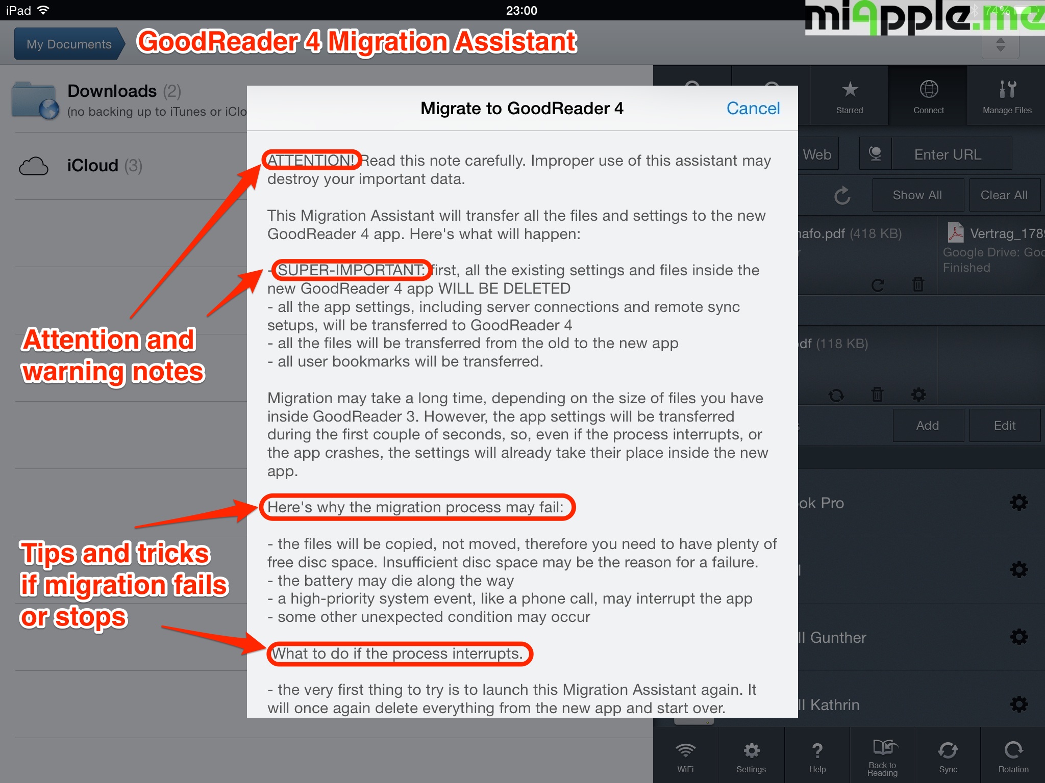 - Migration Assistant – use it to migrate all your files and settings from an older versionofGoodReader (v.3.21) with a single click of a button