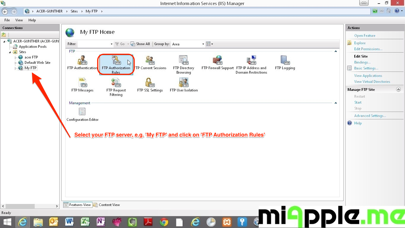 Check FTP-Authorization rules in Windows 8 / Windows 8.1: