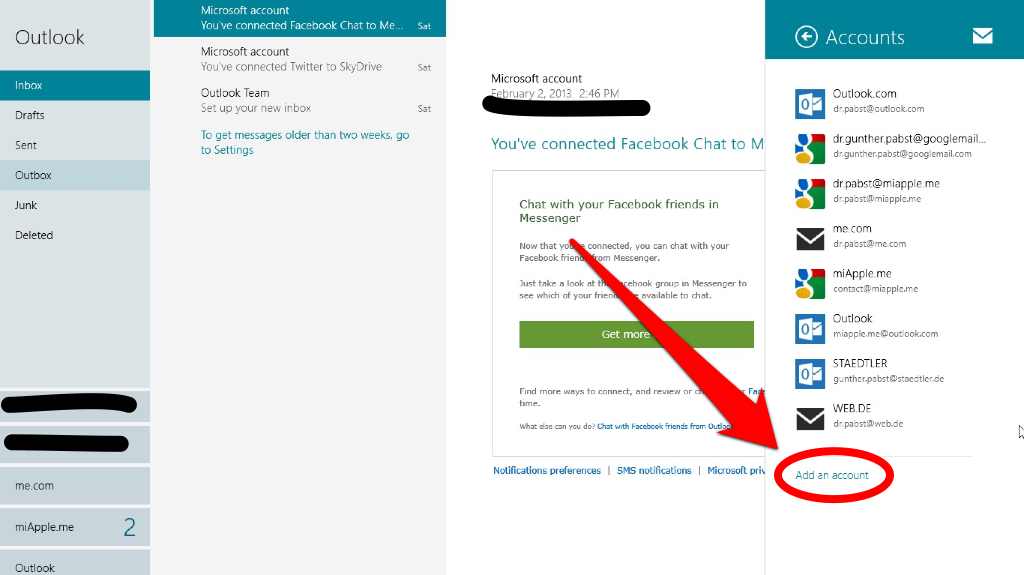 - Go to “Accounts” and choose “Add account”:
