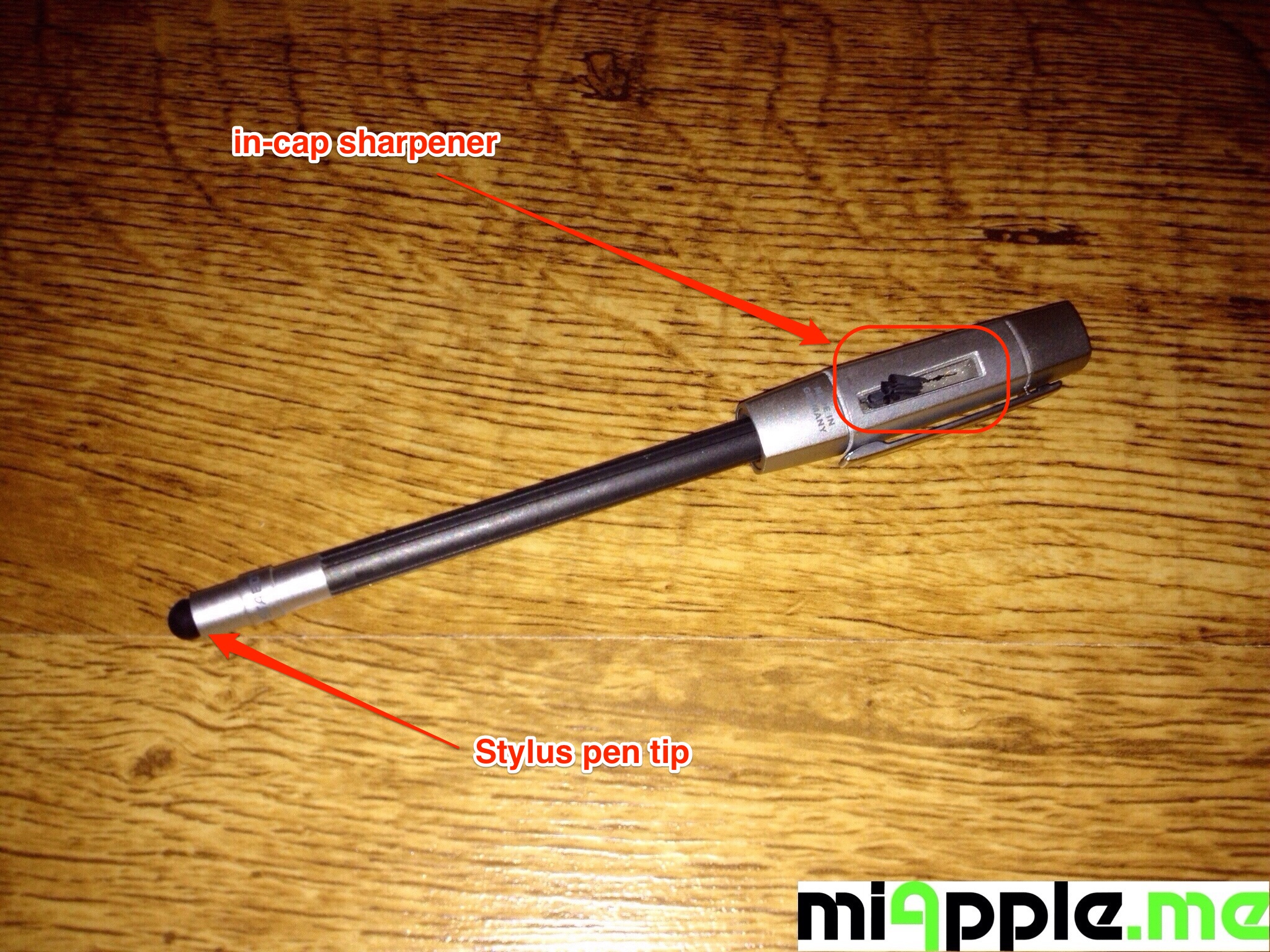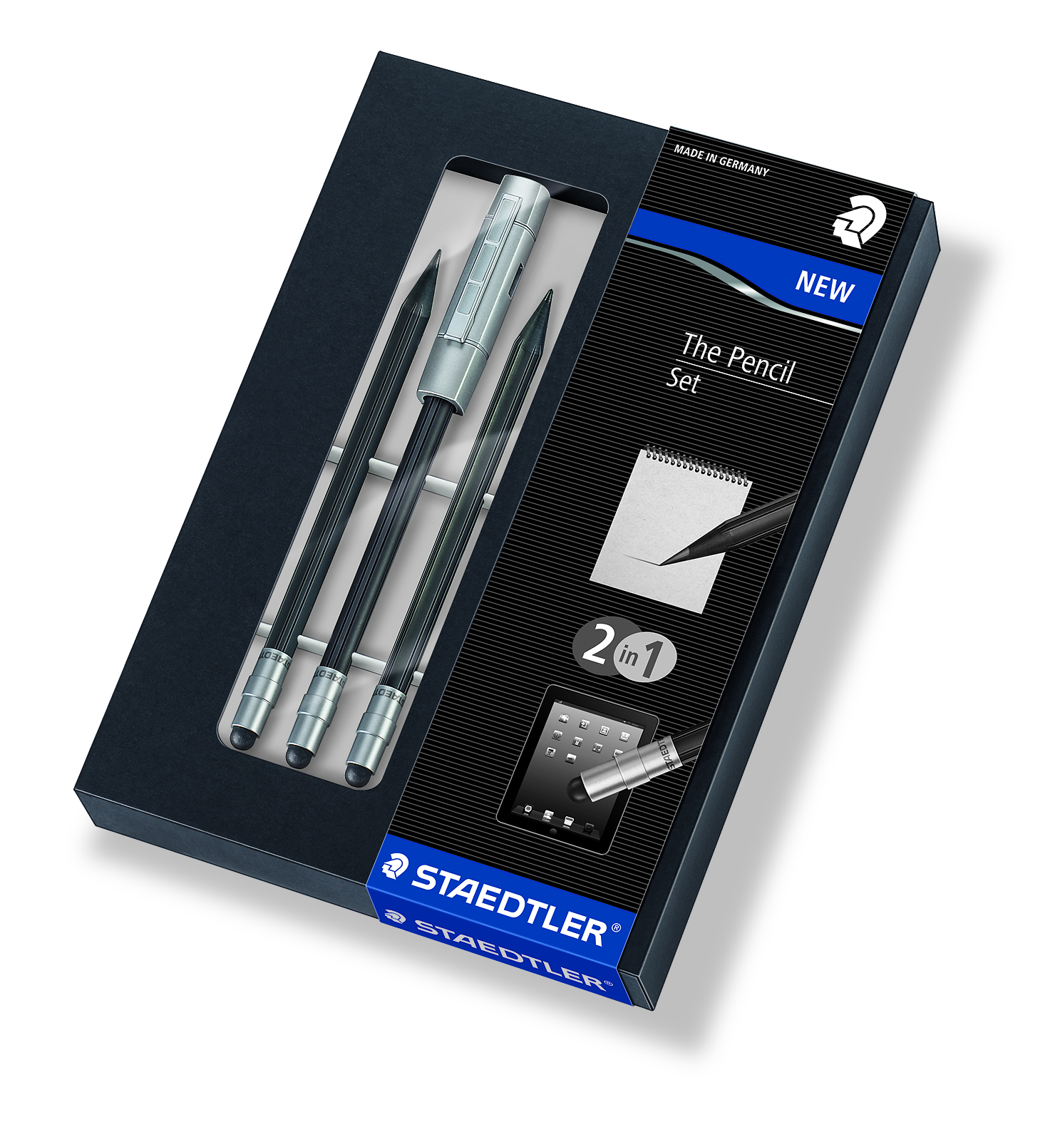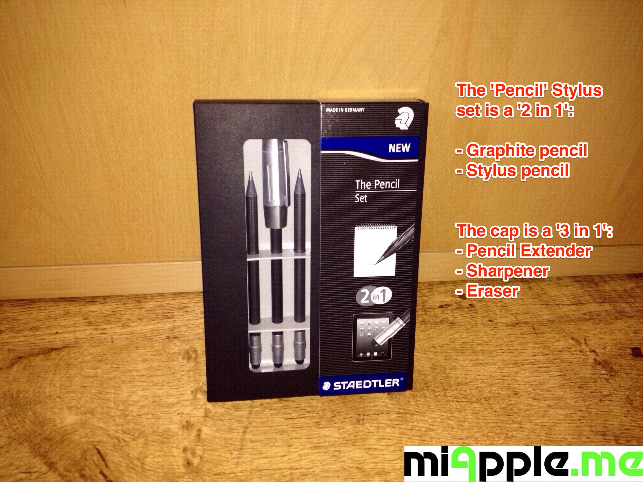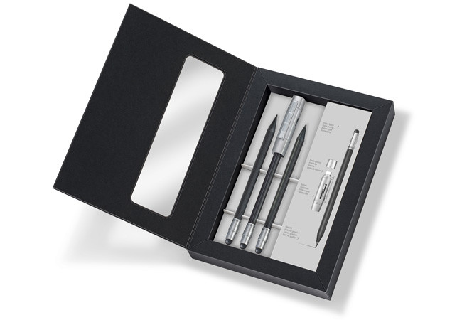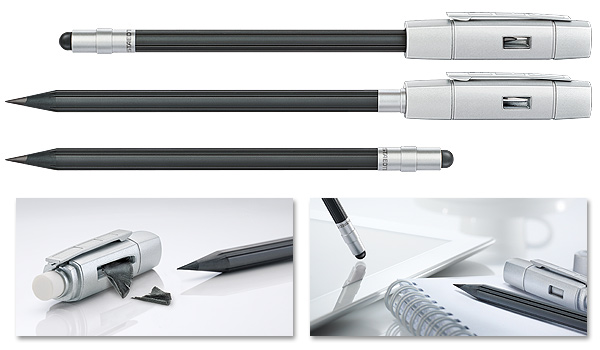 ‘The Pencil’ Stylus is an innovative pencil stylus made from STAEDTLER’s novel WOPEX material (Wood Pencil Extrusion) containing extruded natural wood fibres (PEFC certified) and is part of STAEDTLER’s new PREMIUM line of writing instruments. ‘The Pencil’ is a ‘5-in-1’ product: A graphite pencil, a stylus, an eraser, a sharpener and a pencil extender. ‘The Pencil’ is suitable for all devices with a capacitive touch display like Apple’s iPhone or iPad and Samsung’s Galaxy line. The stylus pen tip is made from a new, conductive material. Notably, ‘The Pencil’ is ‘Made in Germany’.