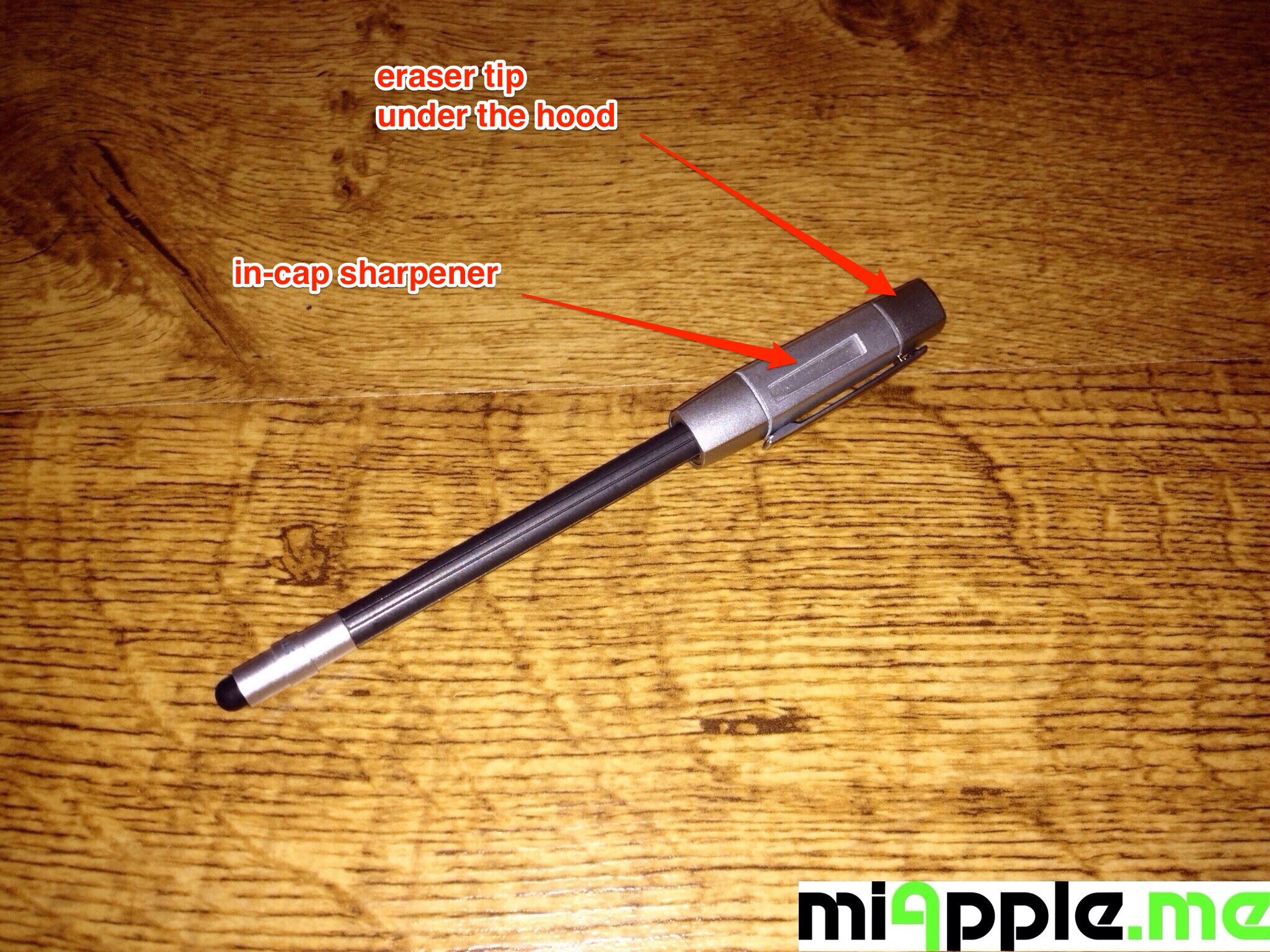 ‘The Pencil’ stylus works with all capacitive touch screens. I tested it on my iPhone 4S and iPad air and the stylus functions perfectly as expected: Precise and direct response to the touch screen combined with a slight grip on the screen, ideal for scrolling.