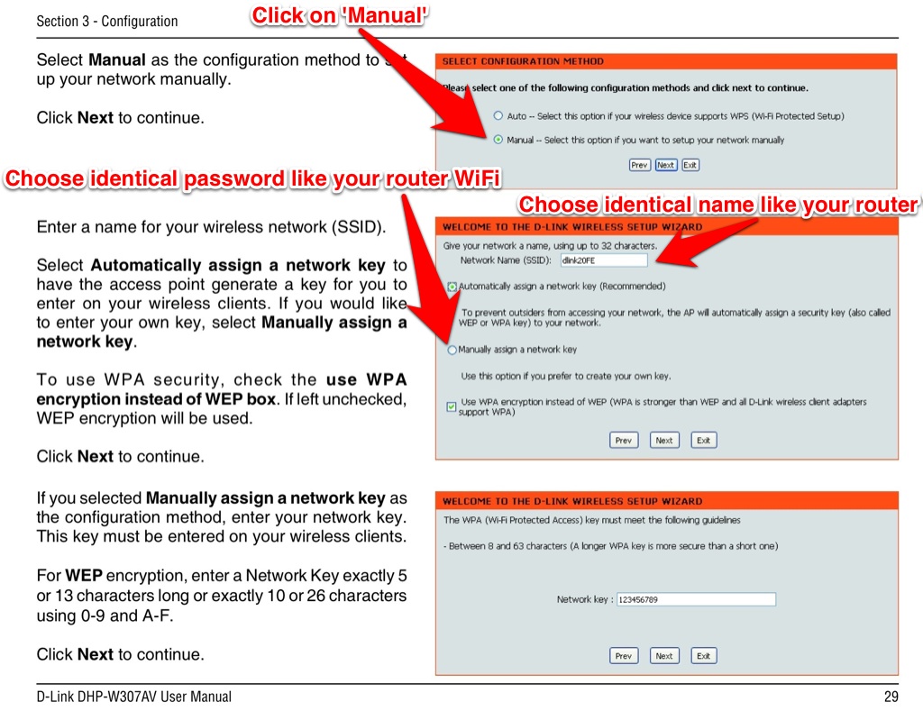 Installation is very easy, just follow the Quick Installation Guide. You do not need to install any other software on your Mac or Windows PC. Just connect the wireless extender (DHP-W306AV) with the ethernet cat5 cable to your Mac or PC and go thoroughly through Step 6 to establish a secure WiFi network: