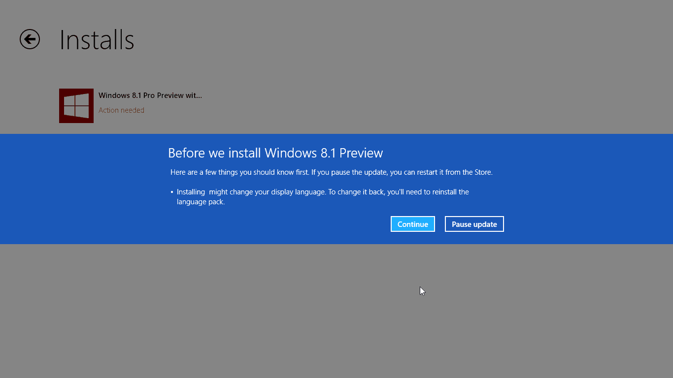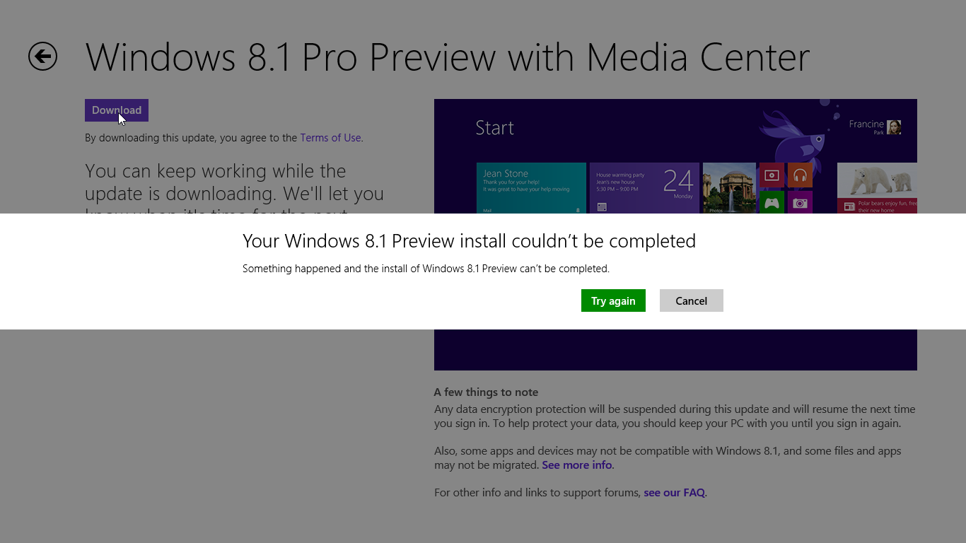 At the first try, I failed installing Windows 8.1 Preview: